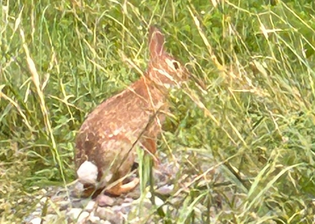 Tonight the rabbit was back. Rabbit made an appearance as I walked along the North path. Rabbit came out of the brush in front of me and stopped to look at me. I looked back at and he busied himself hopping she back and forth. She’s fatter I thought. Plump and happy she has made a home here. The dog doesn’t bother her. She’s unafraid and stares at me. Respect rabbit, we share this space. She turned around to show her white tail and hopped into the tall grass.
